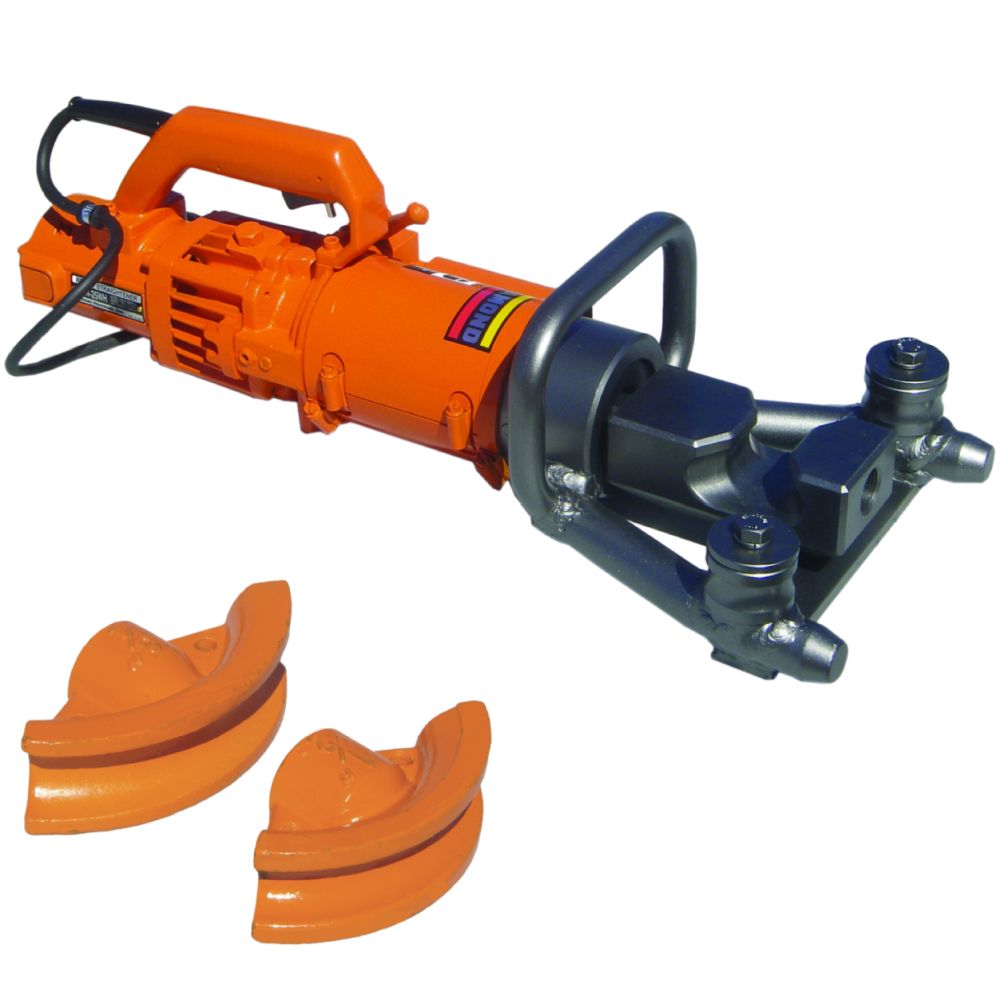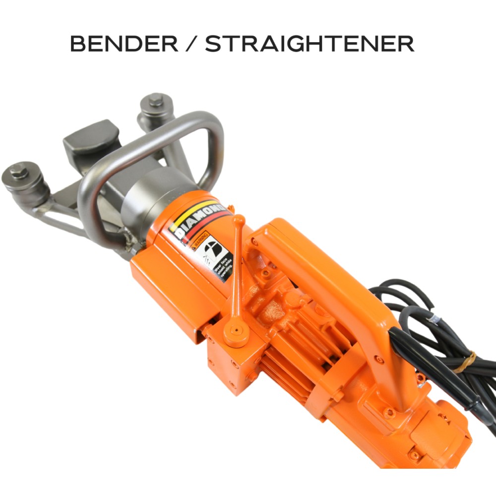 The DBR-25WH is a portable heavy-duty electric/hydraulic rebar bender and straightener. It helps save valuable man-hours by cleanly and efficiently bending or straightening bent rebar. It functions as a simple 90-degree portable electric rebar bender. The interchangeable bending hook covers rebar diameters from #4 to #8 grade 60. Maximum pressure for bending and straightening ranges from 8.5 to 11 tons. It's portable and versatile enough to bend or straighten rebar in-place with its push/pull hydraulic capabilities. It will bend a 90-degree angle in only (4) seconds. The bending head also rotates 360 degrees. Ships complete in a wooden carrying case with hydraulic oil and a tool kit. Solves bending applications other tools can't even attempt.