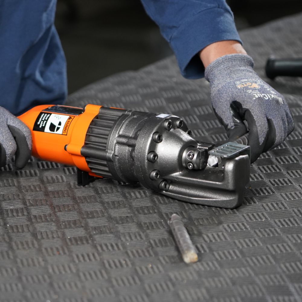 The DC-16LZ is a medium-duty rebar cutter that will safely, efficiently, and cleanly cut rebar up to #5 (5/8”) diameter grade 60. This self-contained electric/hydraulic unit will also cut other items like chain, bolts and rod but is specifically designed for rebar. The DC-16LZ is intended for effortless medium-duty applications on vertical and horizontal rebar cutting applications. This tool would be a great asset for swimming pool, masonry, and ICF contractors. The DC-16LZ is a cold-cutting shear, unlike saws with abrasive blades and cutting torches, there are no sparks or flame. A safety relief valve for retracting the piston and a cutting guard are standard features. Ships complete in a carrying case with hydraulic oil and a tool kit.