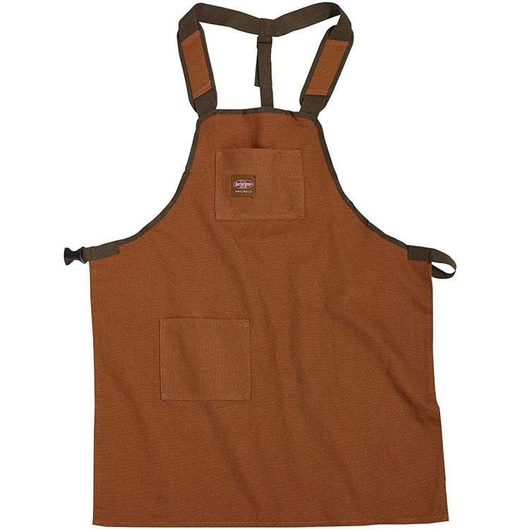 The Bucket Boss Super Shop Apron is great for working in a wood shop, you know how saw dust can get all over your shirt and pants. You need a full coverage apron and the Bucket Boss Super Shop Apron is exactly what you need. Made of 18 oz. Duck wear Canvas this is a full coverage apron to protect you from saw dust and flying debris. There are padded shoulder straps and there is one large waist pocket and one bib pocket. The adjustable belt fits waists up to 52" and has a quick release buckle.