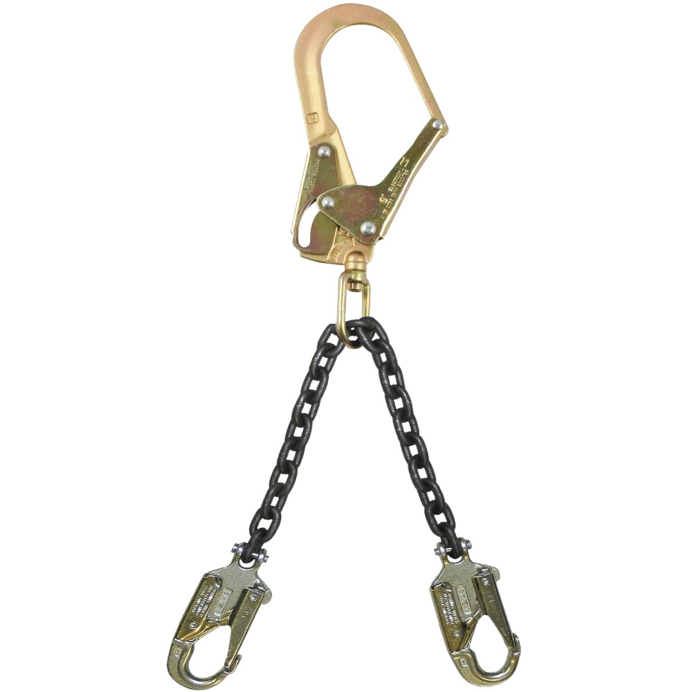 Rebar positioning device features grade 80 chain and our standard rebar hook for anchorage. Also features 2 forged Offset Clevis snap hooks for attachment to the side D-rings on your full body harness or positioning belt.
