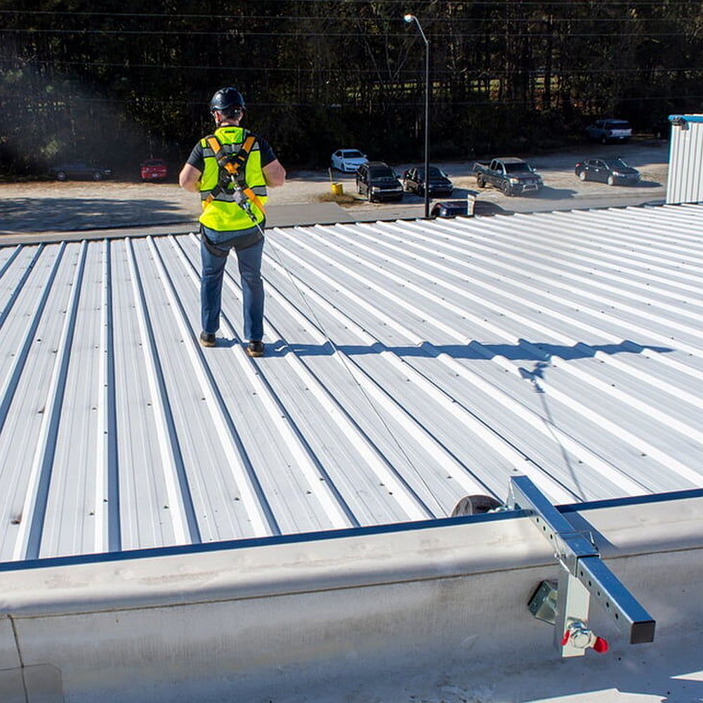 FallTech Parapet Wall Anchor is for temporary fall arrest anchorage and fits parapet walls 1/2” to 15" thick with no fasteners required.
