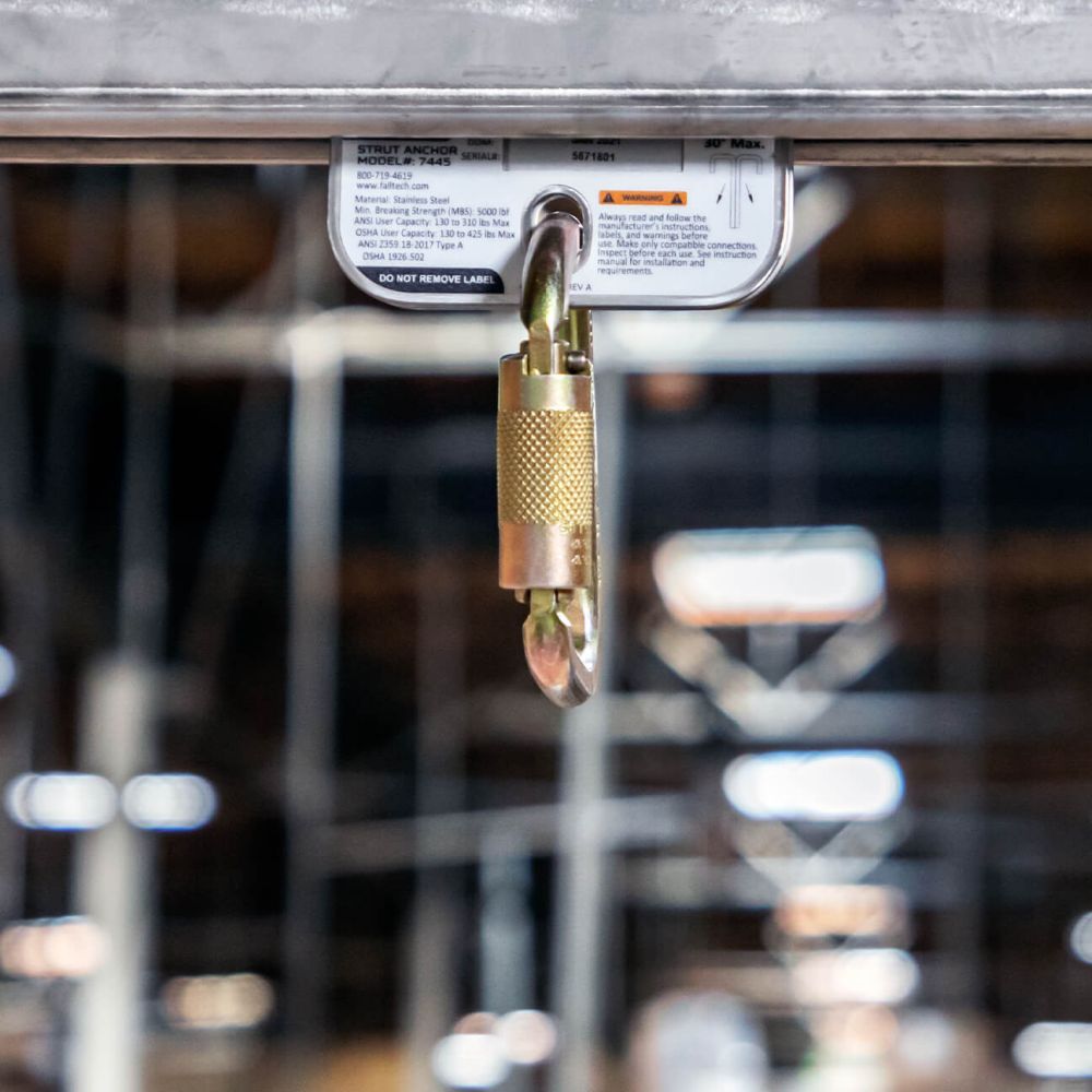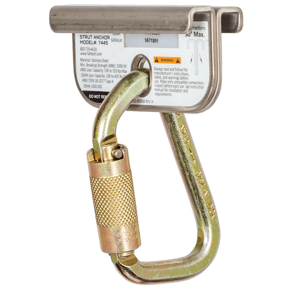 The Falltech Strut Anchor is a convenient mobile personal fall arrest anchorage connector fitting 1-5/8" wide strut.