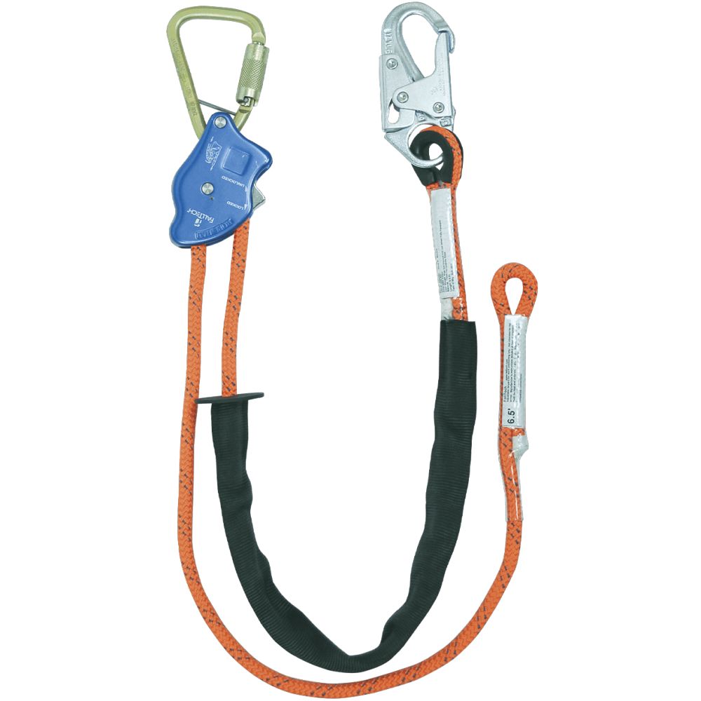 Falltech Tower Climbers rope positioning lanyards provide light weight and adjustable length in hands-free work applications. All lanyards include an auto-locking, one-hand aluminum rope adjuster and two integral connectors for balanced weight distribution on the hip D-rings.