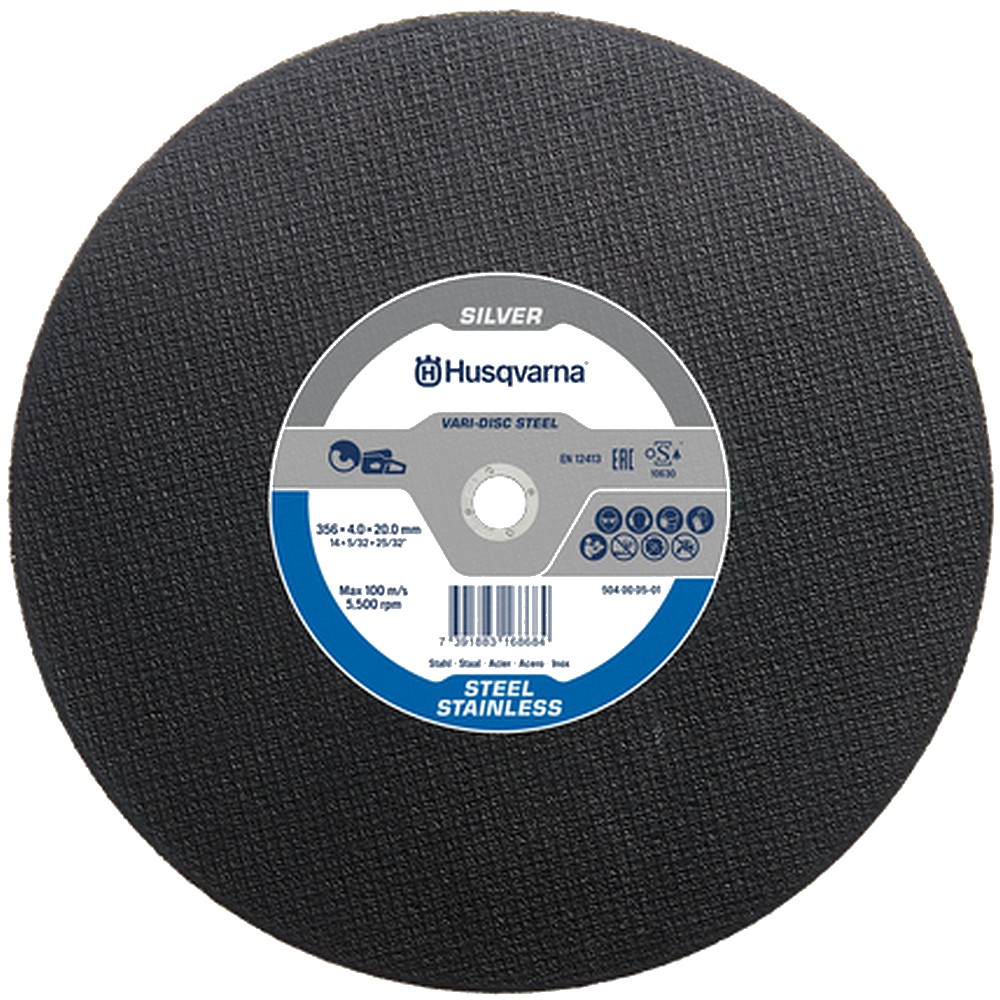 Husqvarna 9-inch abrasive metal cutting blades used with the Husqvarna K 535i cordless battery cutoff saw. It is a conventional abrasive disc specially recommended when cutting carbon steel, iron or stainless steel.