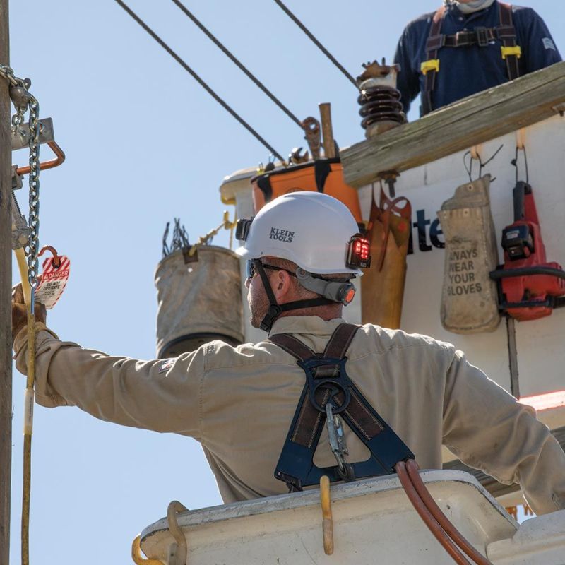 Designed to attach directly to Klein Hard Hats and Safety Helmets with patent-pending front/back accessory mounts; no straps needed
