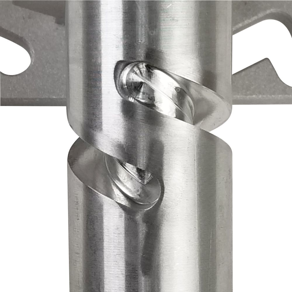This double tilt action bracket controls the pitch of the blade with a one-to-one turning ratio of handle to blade. Turning the handle eliminates the need for bending and lifting when moving tools across fresh concrete. The bracket is made of rugged, yet lightweight aluminum for durability. Bronze and stainless steel components on the bracket are housed internally to protect them from concrete build-up. Dual grease fittings flush out dirt adn debris while lubricating the bracket. This patented design ensures smooth movements. Use with 1-3/8" and 1-3/4" button bull float handles, sold separately. Fits on 2- or 4-hole bull floats and channel floats
