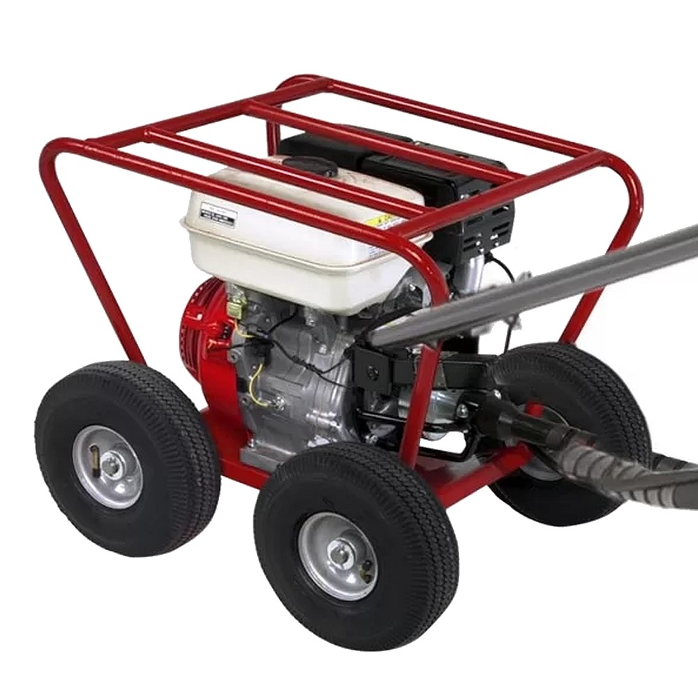 The engine throttle control and the on/off switch are conveniently located on the left handle. Padded handles are ergonomically designed for less fatiguing operation.