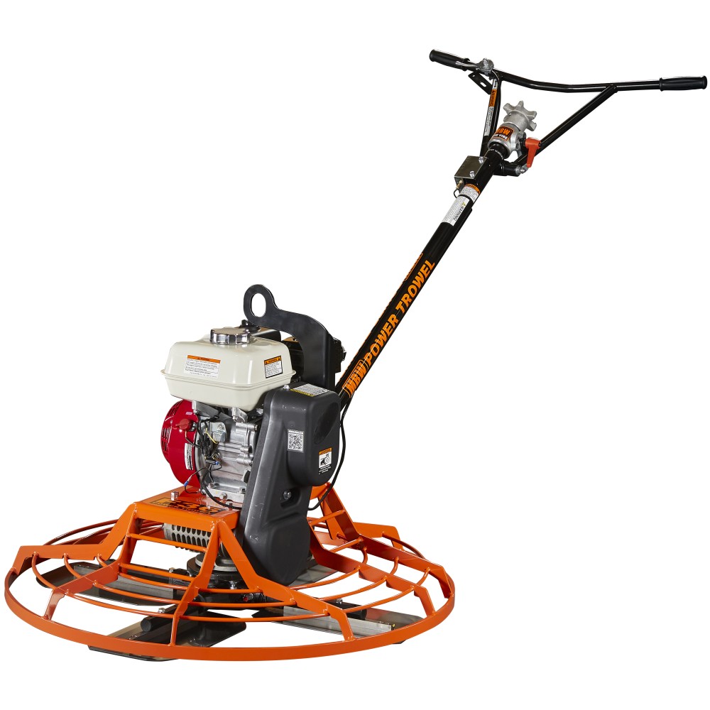 MBW 36 and 46 inch trowels satisfies new ISO safety standards but enables finishers to clean and change blades easily. Very importantly these models feature a patent Low Vibe handle offering the industry's lowest hand arm vibration levels. And the height adjustable operator's handle is now tool free.