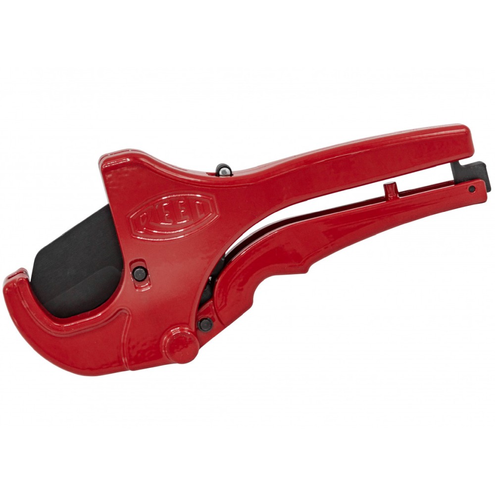 Reed Tool ratchet shears with hardened steel blades are ideal for cutting PE, PP, PEX and ABS pipe, along with PVC irrigation lines. One-hand model offer a 13-step ratchet mechanism for best mechanical advantage and smoothest operation.