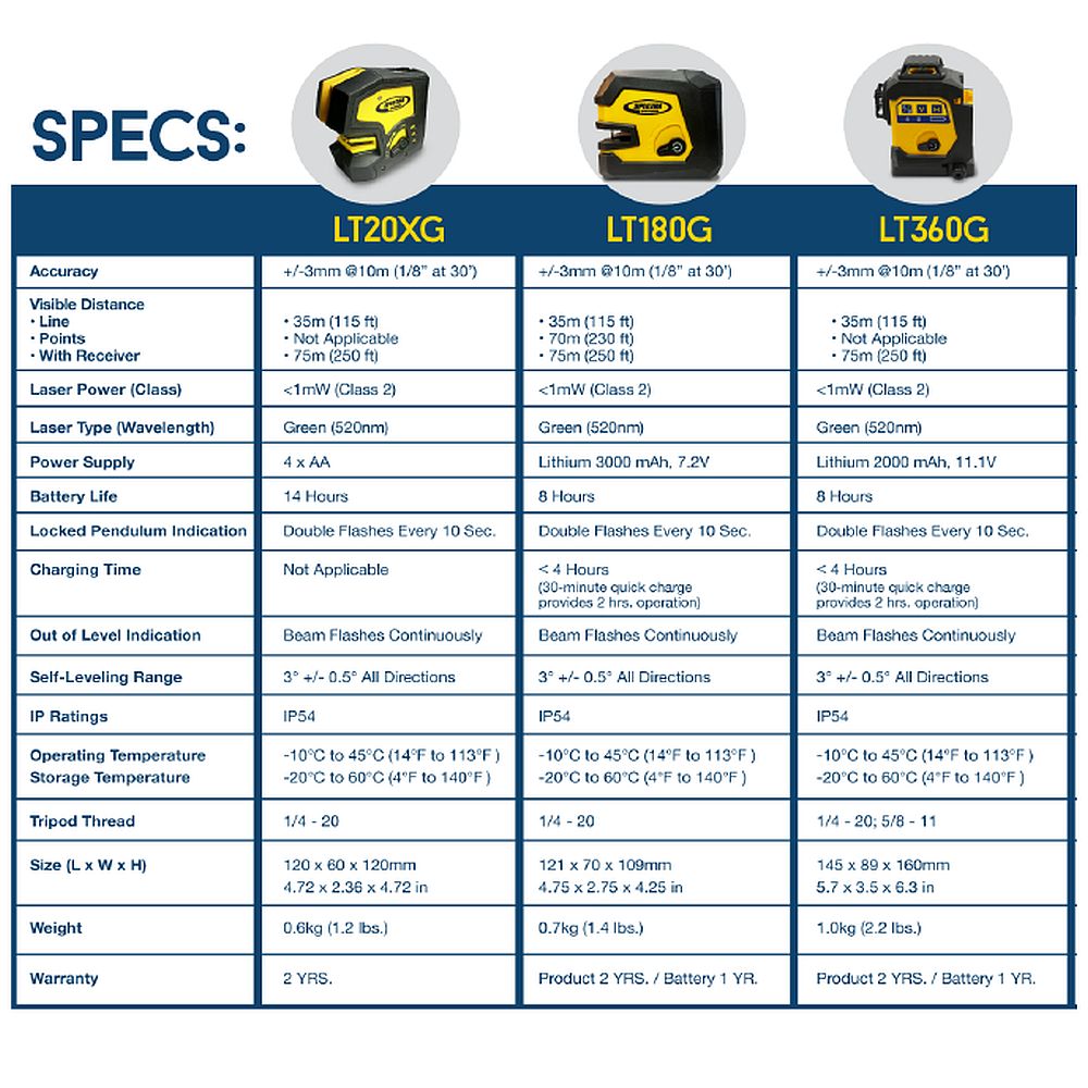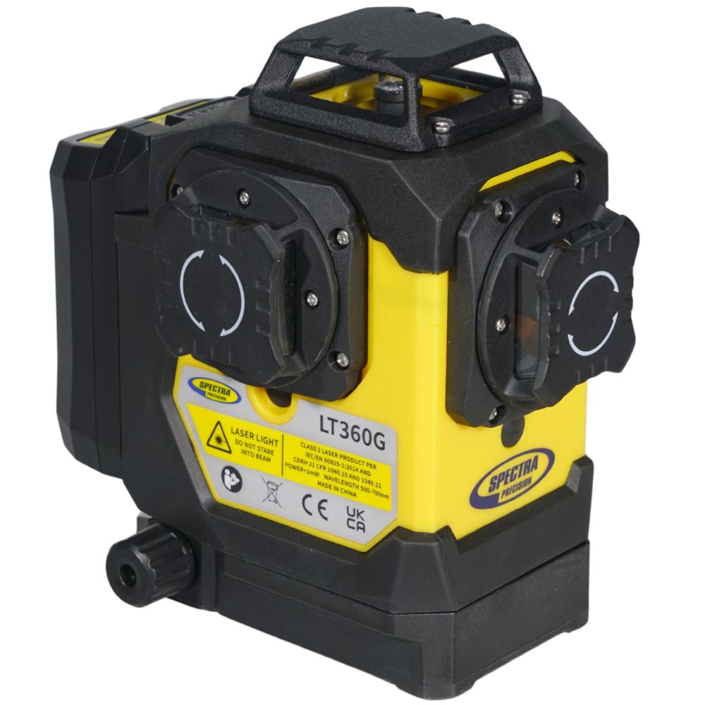 Easy-to-use, easy to count on, Spectra LT360G self-leveling laser for precision. The Spectra Laser LT360G Laser Tool is a high-precision 3-plane laser built for demanding layout tasks in drywall, electrical, and framing applications. Crossline layout laser tools give you enough plumb, level and square references to finish a room in a fraction of the time it takes with traditional tools. One self-leveling set-up and you can install walls, windows, doors, cabinets, chair rails, counters and anything else that needs to be right.